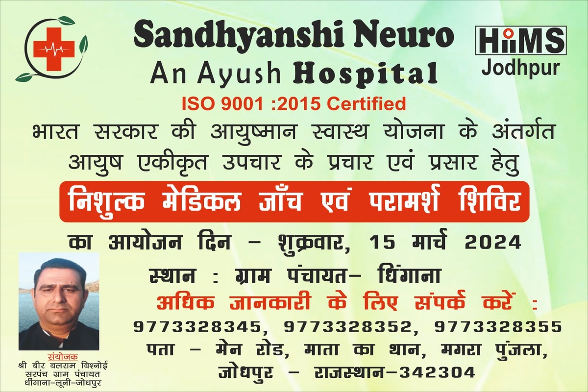Sandhyashi Neuro Hospital is a renowned healthcare facility located in the downtown area of Jodhpur on Main Road, Mata Ka Than, D-Kirti Nagar, Jodhpur-Rajasthan. The hospital is committed to providing comprehensive healthcare Treatment through an integrated system of Ayurveda, Panchakarma, Yoga, Naturopathy, Homeopathy, Dietician, and Physio-Therapy specialist doctors. This unique approach addresses the root cause of diseases and offers patients a personalized treatment experience.